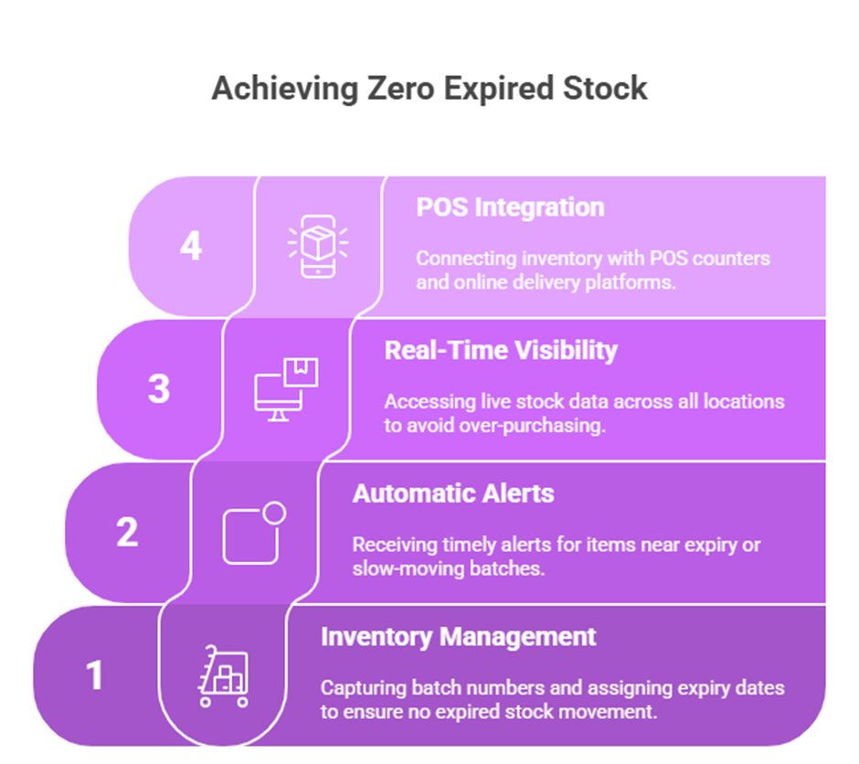 Procurement → Batch Entry → Expiry Tracking → Storage → Multi-Channel Sales → Expiry Removal → Reporting