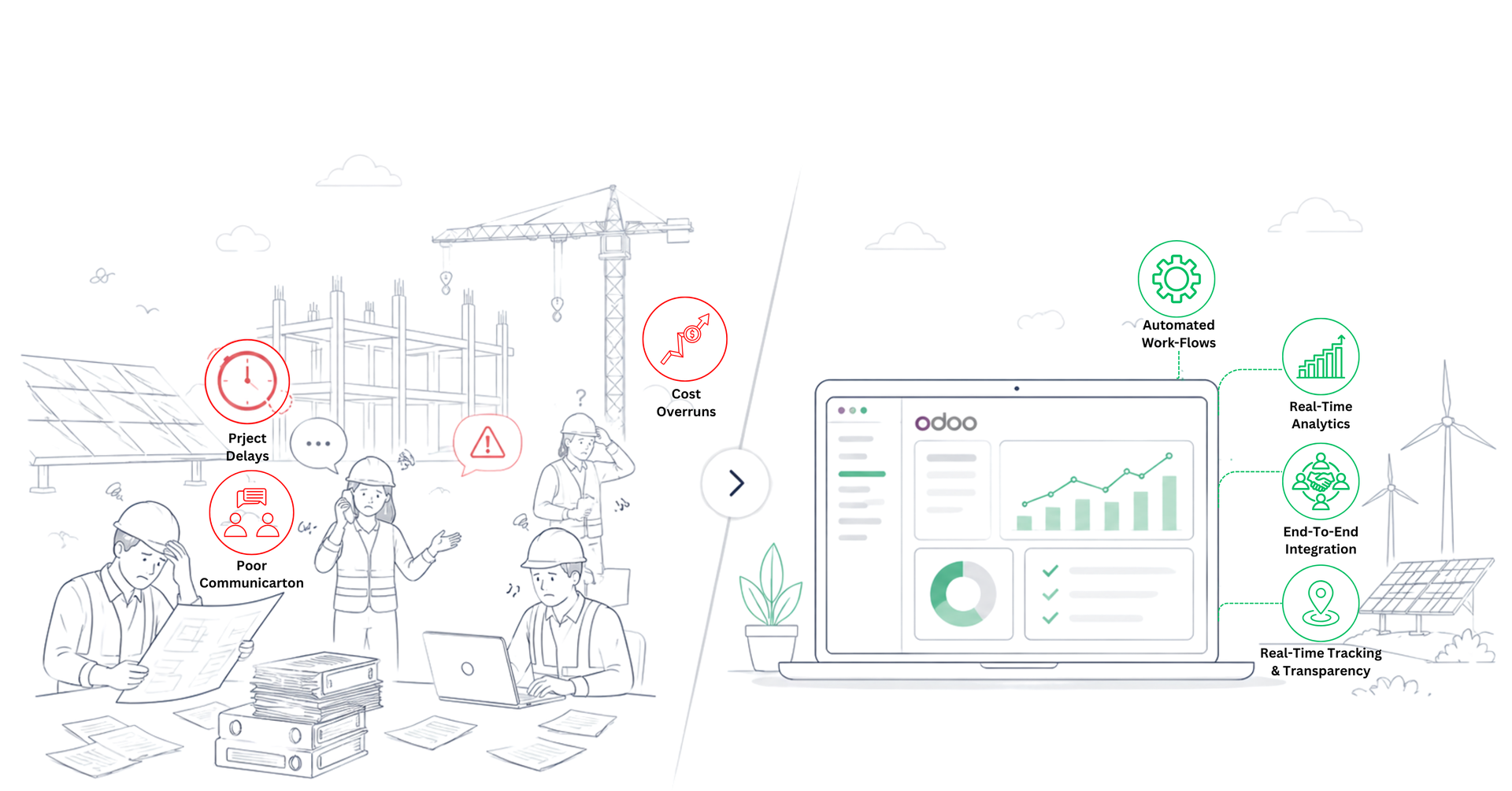 Let’s explore some of the most critical challenges in solar EPC and how Odoo addresses them head-on.