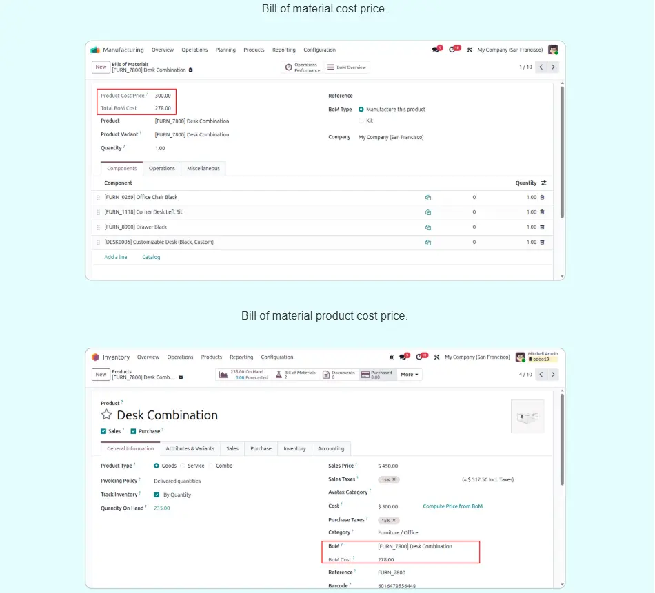 BOM Product Cost Price