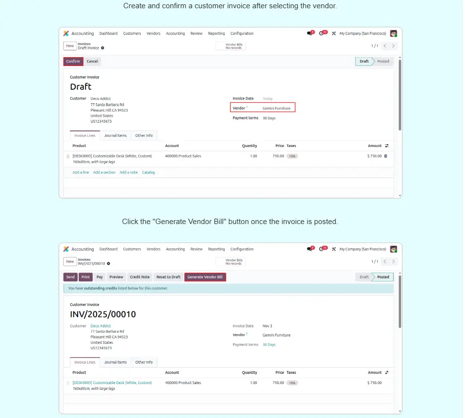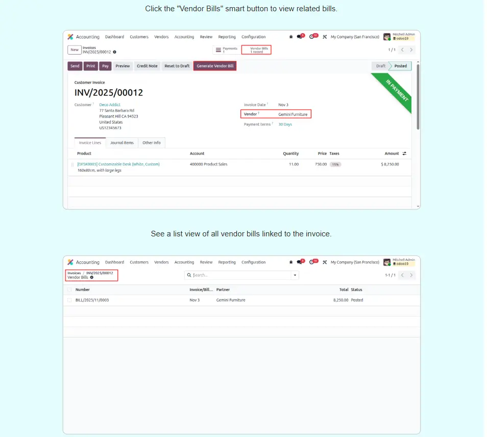 Create Vendor Bill from Customer Invoice