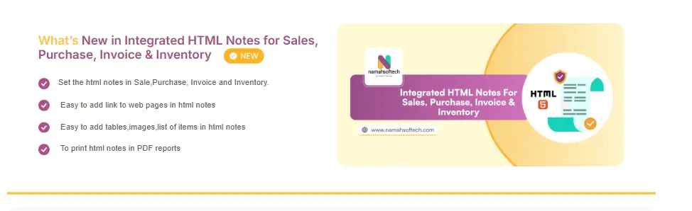 Integrated HTML Notes for Sales, Purchase, Invoice & Inventory