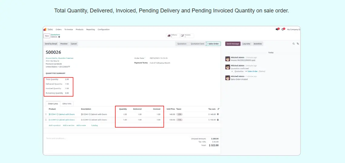 Sale Order Total And Remaining Quantity Tracker