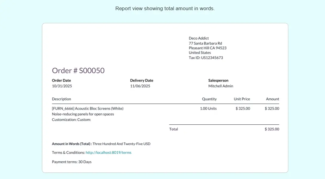 Amount In Words In Invoice, Sale Order And Purchase Order