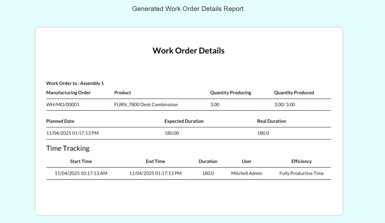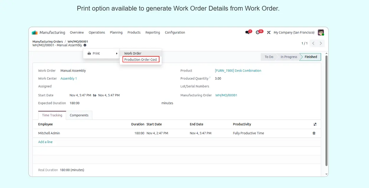 Print Work Order Details