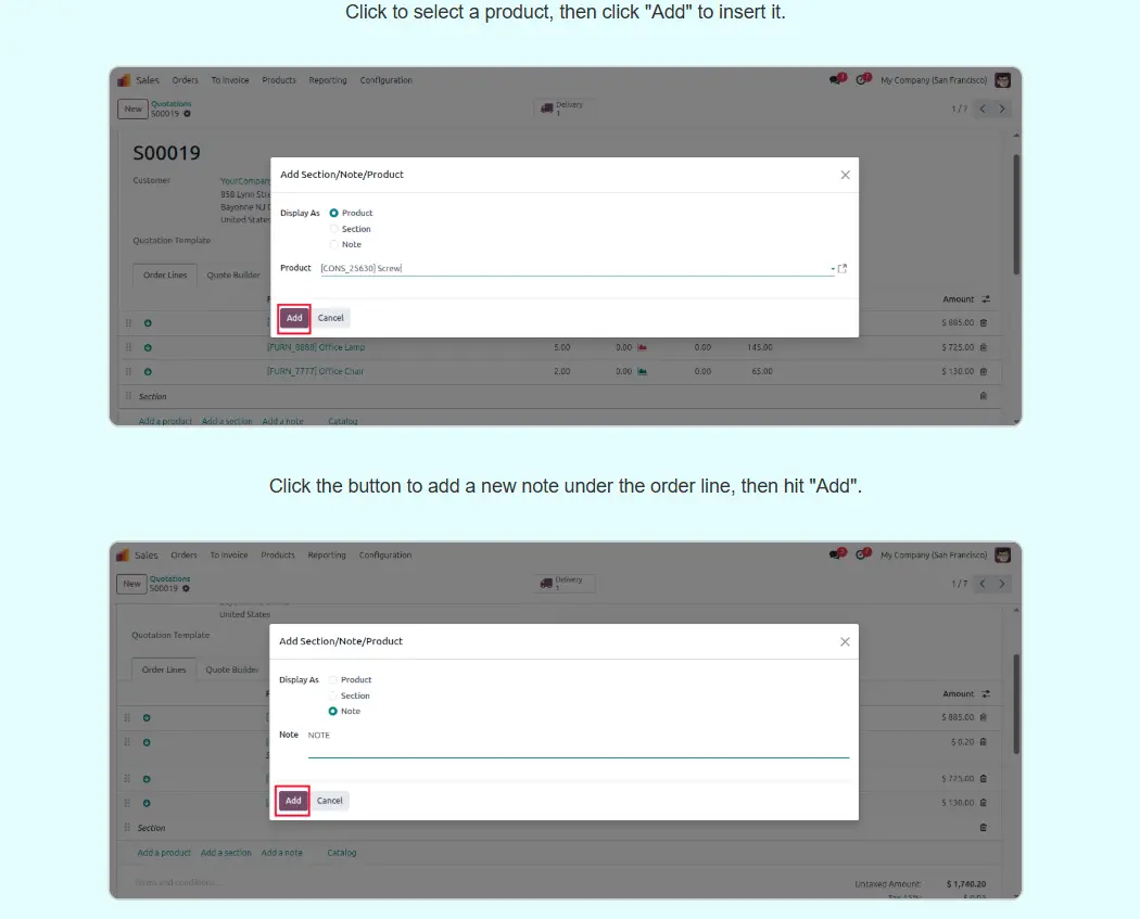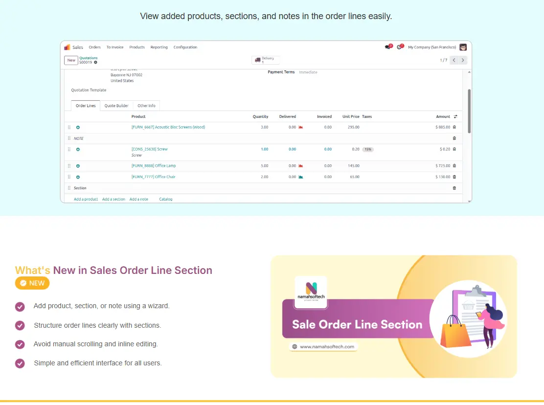 Sale Order Line Section