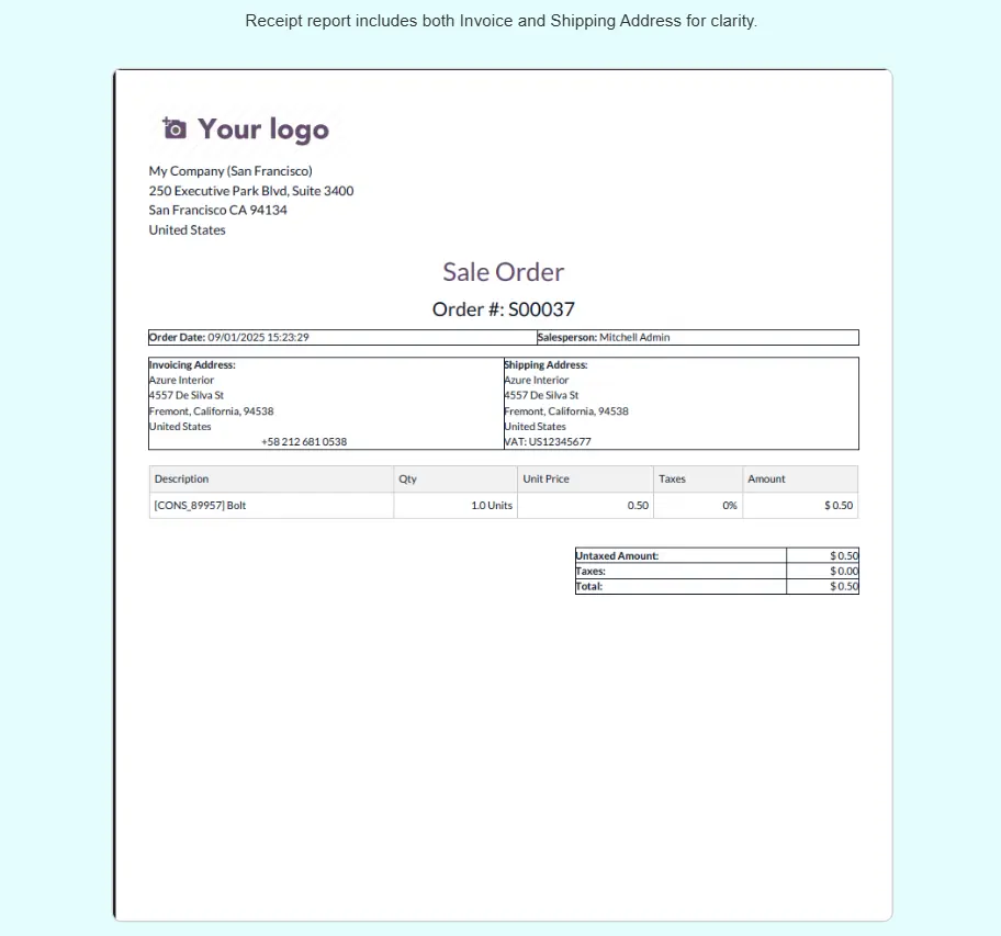 Sale Order Receipt Report