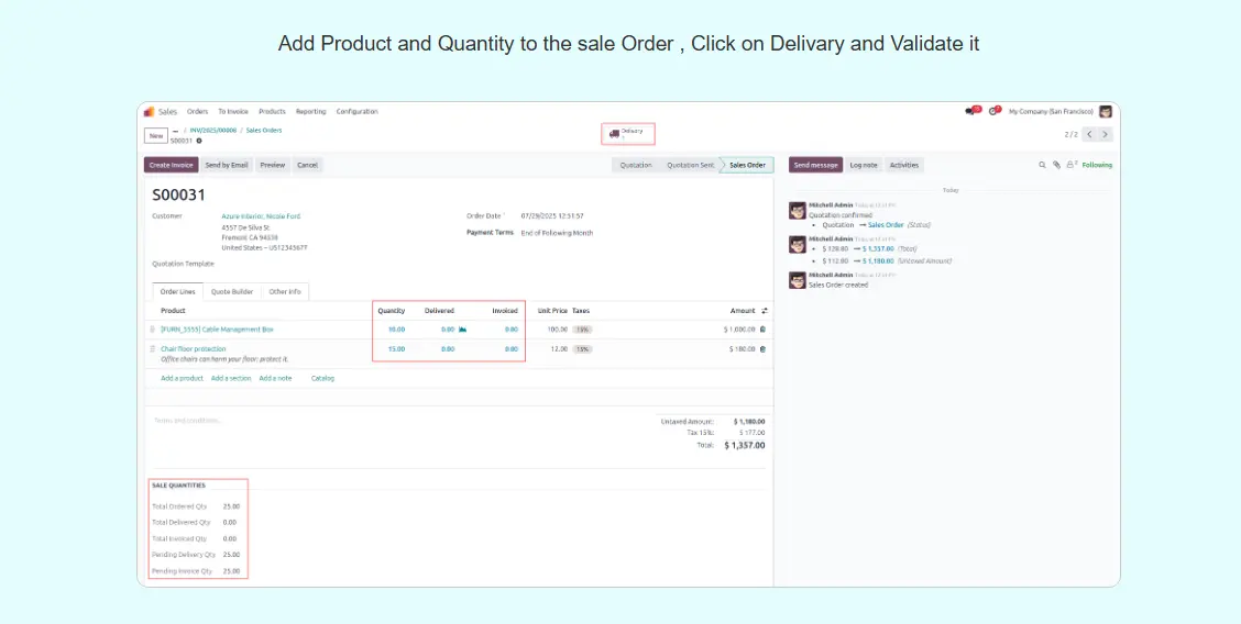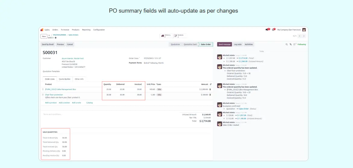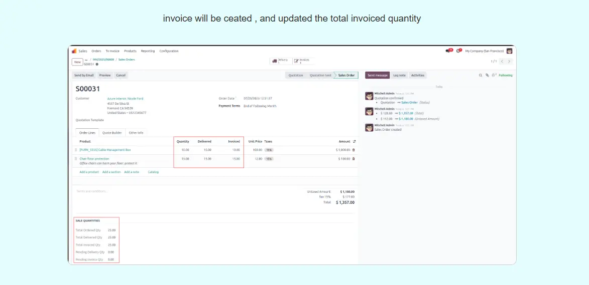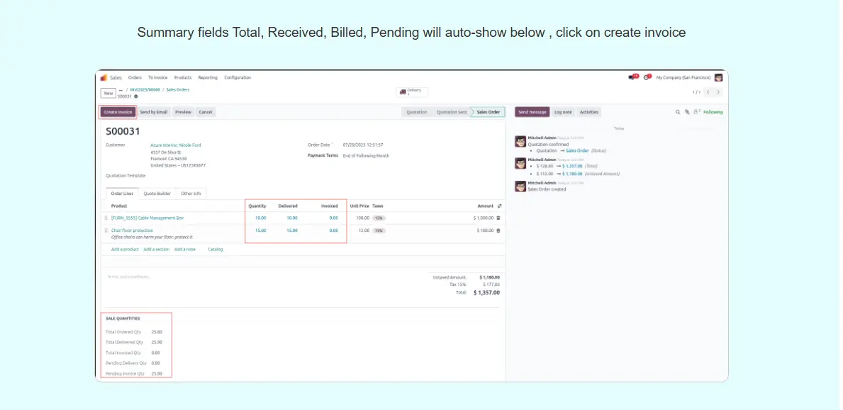sale Order total Quantity Summary