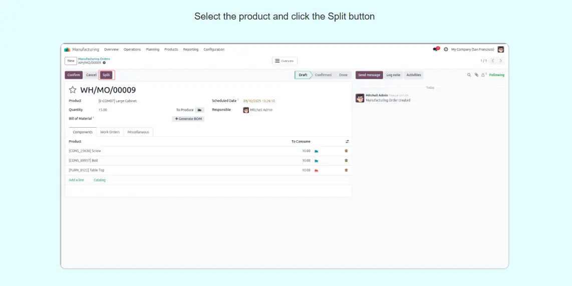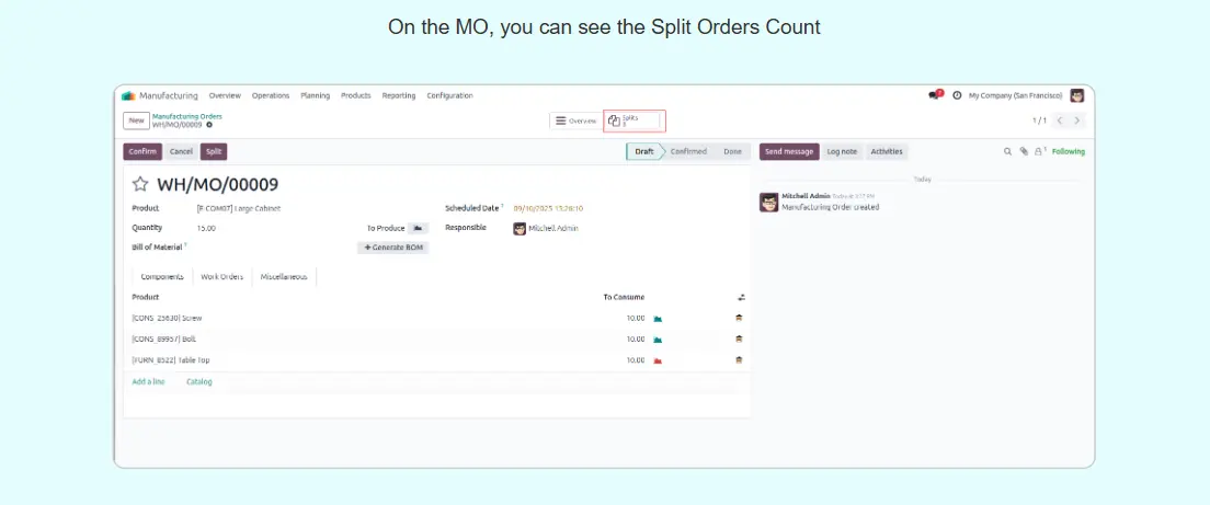 Split Manufacturing Orders