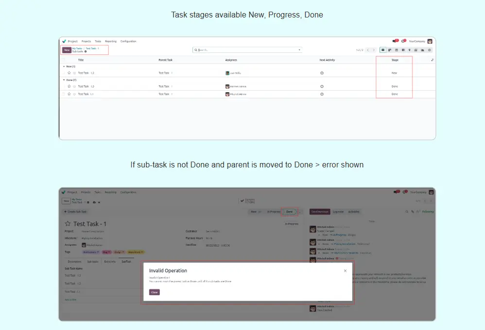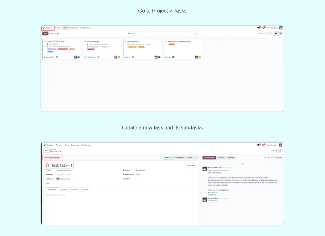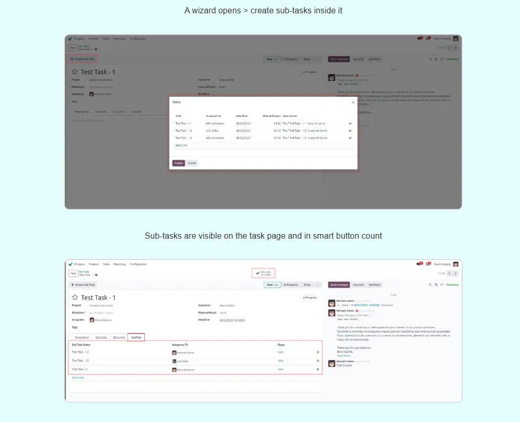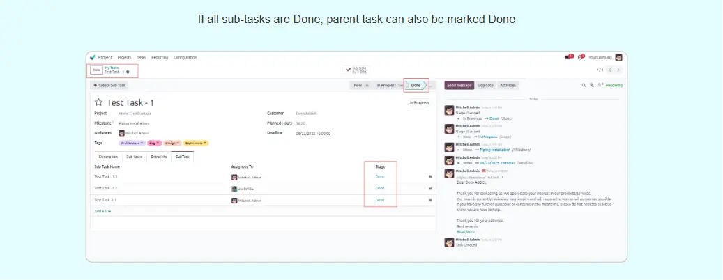 Task Delegation and Subtasks Odoo