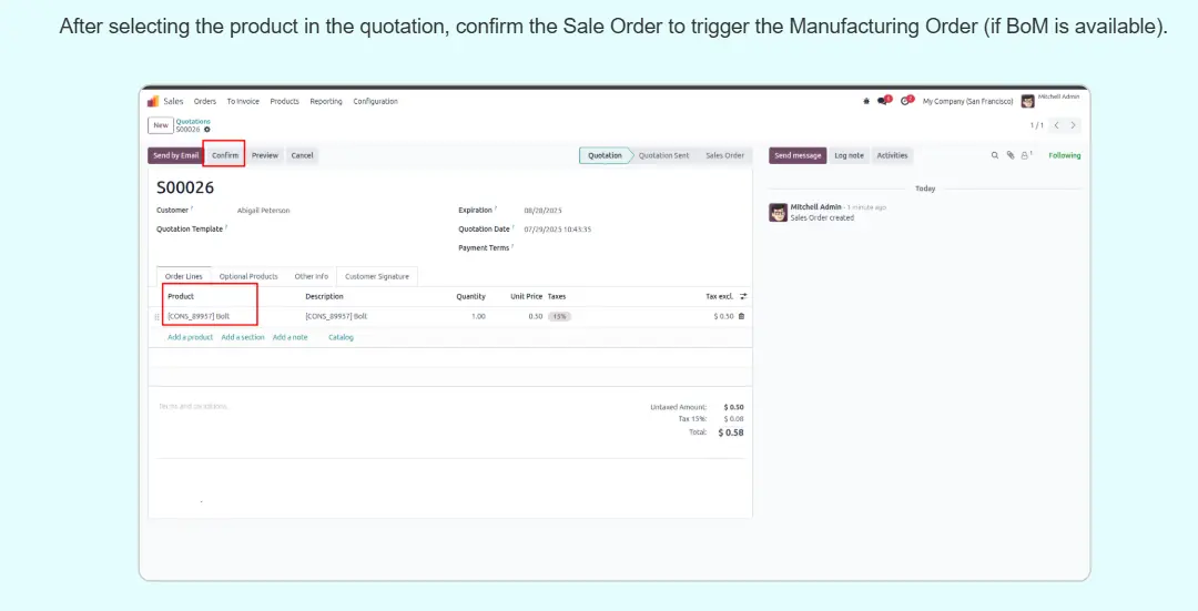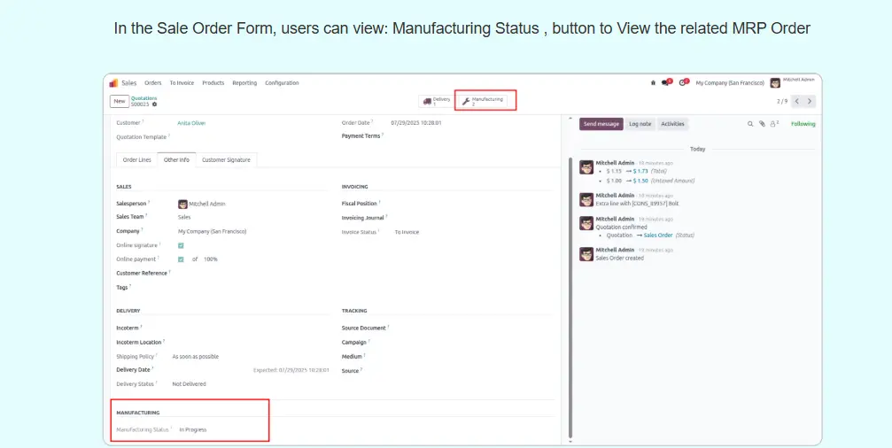 Sale Order Manufacturing Status